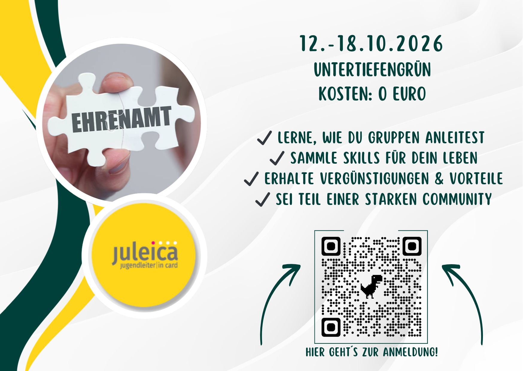 Die JuLeiCa (Jugendleitercard) findet dieses Jahr vom 12. - 18.10.2026 in Untertiefengrün statt.