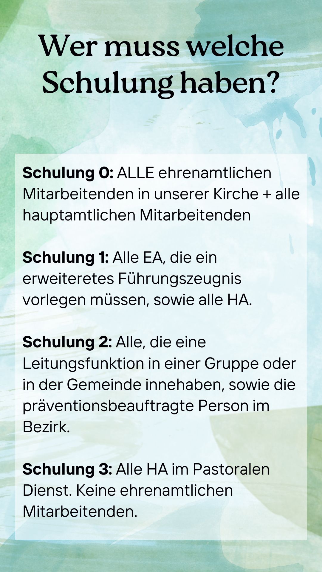 Hier eine kurze Übersicht wer welche Schulung braucht.